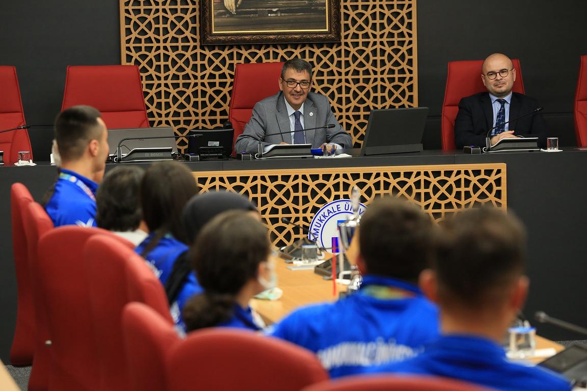 REKTÖR KUTLUHAN MADALYALI SPORCULARI TEBRİK ETTİ