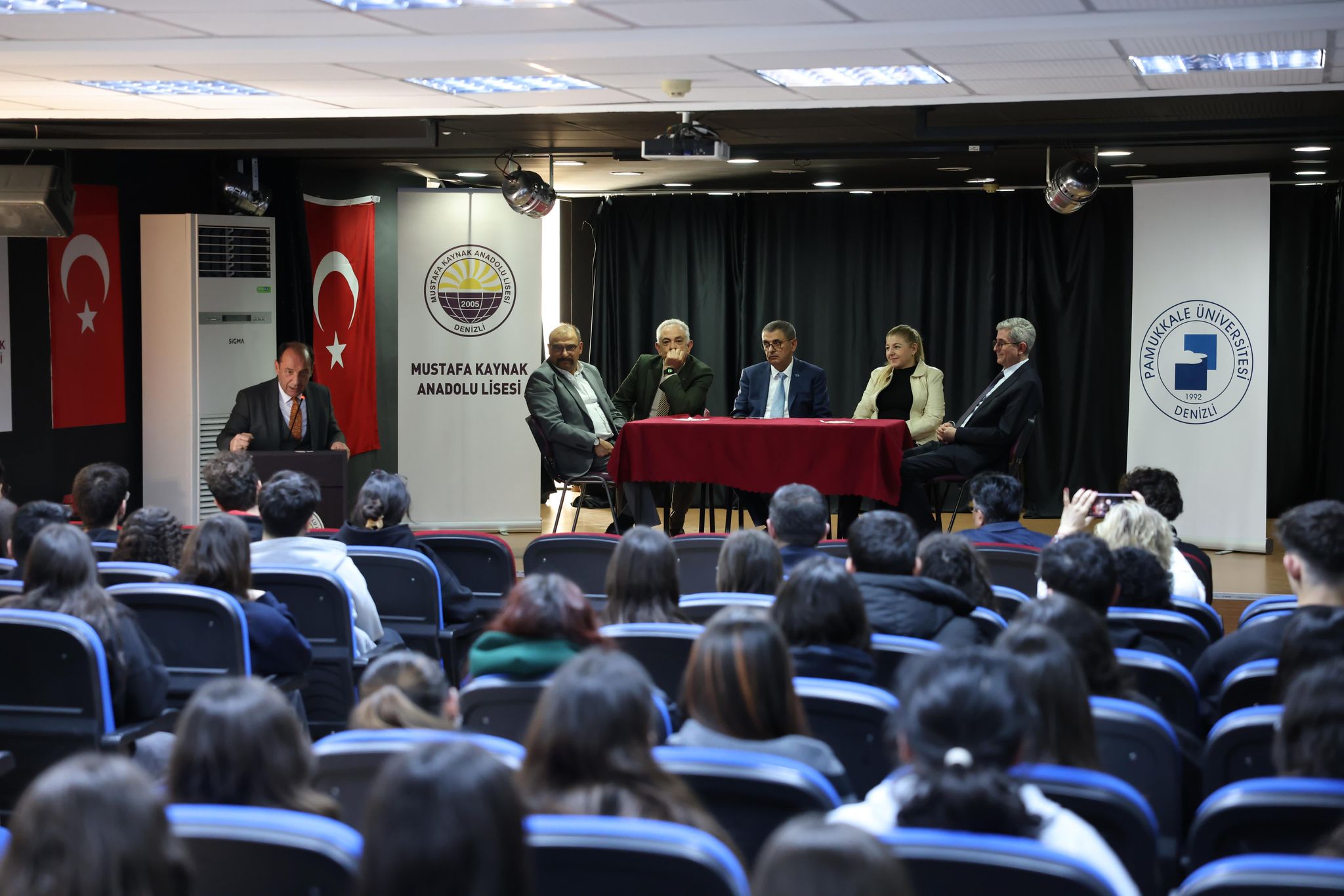 Pamukkale Üniversitesi (PAÜ) Rektörü Prof. Dr. Ahmet Kutluhan, Tıp Fakültesi Dekanı Prof. Dr. Osman İsmail Özdel, Hukuk Fakültesi Dekanı Prof. Dr. Hülya Kabakçı Karadeniz, Mühendislik Fakültesi Dekanı Prof. Dr. Osman Nuri Ağdağ, İktisadi ve İdari Bilimler Fakültesi (İİBF) Dekanı Prof. Dr. Ender Coşkun ve İİBF Maliye Bölümü Başkanı Doç. Dr. Fatih Akçay Mustafa Kaynak Anadolu Lisesi’nin konuğu olarak PAÜ’yü tanıttılar.