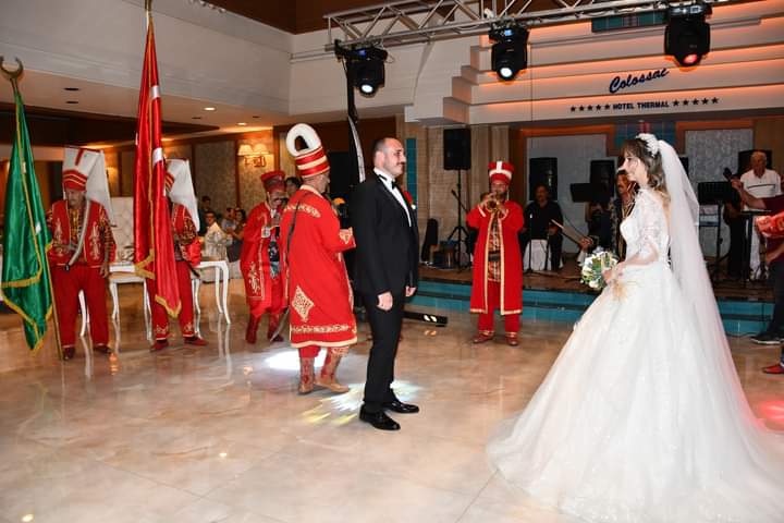 GELİNLE DAMAT SALONA MEHTER TAKIMI EŞLİĞİNDE GİRDİ