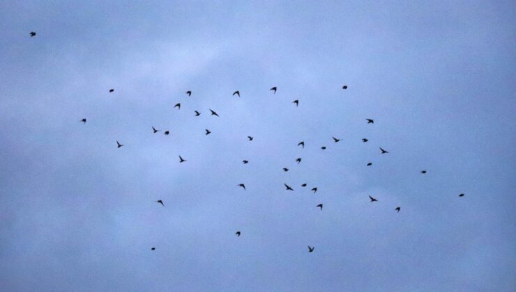 Gökyüzünde çeşitli figürler çizen yüzlerce kuş, farklı yönlerde uçuşarak bir dans gösterisini andıran manzaralar ortaya çıkardı. Vatandaşların da ilgiyle izlediği kuşların görsel şöleni, güneşin doğmasıyla birlikte son buldu.