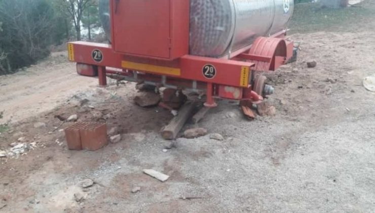 Denizli’de yangın anında kullanılması için hazır bekletilen su dolu tankerin lastiklerini çalındı.