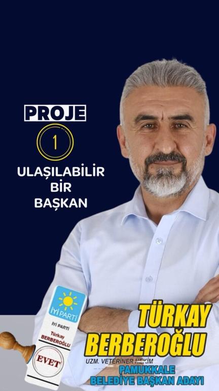 İYİ Parti Pamukkale Belediye Başkan Adayı Uzman Veteriner Hekim Türkay Berberoğlu, aylardır devam ettirdiği seçim çalışmaları ışığında ilçe sakinlerinin beklentileri doğrultusunda hazırladığı projelerinin, diğer adaylar tarafından kopyalanıp taklit edildiğini söyledi. Ekibiyle birlikte ve uzun çalışmalardan sonra hazırlanan ayağı yere basan projelerin ilçe sakinleri tarafından da çok beğenildiğini ve büyük destek gördüğünü anlatan Berberoğlu, başkan seçilmesi halinde en ulaşılabilir belediye başkanı olacağıyla ilgili projesinin şimdiye kadar kopyalanıp, taklit edilemediğini söyledi.