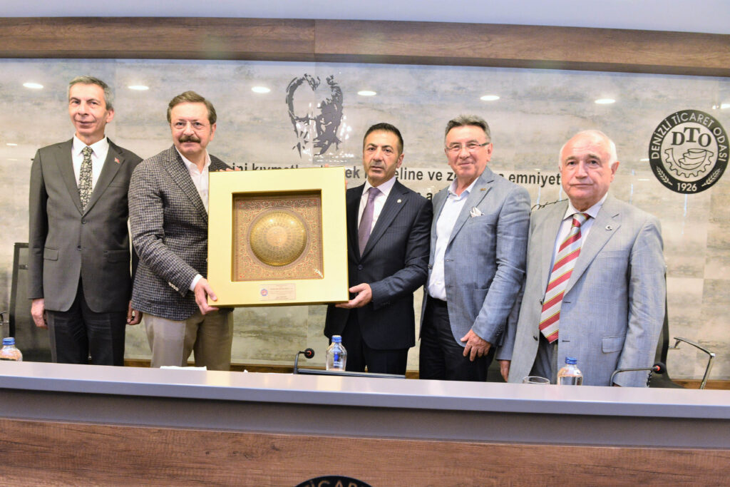 TOBB Başkanı Hisarcıklıoğlu ise, Denizli’den, Denizli Ticaret Odası ile Başkanı Uğur Erdoğan’dan övgüyle söz ederek, “Denizli; sanayinin, ticaretin ve turizmin merkezi konumunda; bundan dolayı, Denizli’ye bu değeri kazandırdığınız için sizlere teşekkür ederim. Odamız ve Başkanımız, Denizli iş dünyamızın hizmetinde… Ben buna ta Ankara’dan bizzat şahidim. Uğur kardeşim, ‘Denizli’ye hizmet edelim’ diye işinden, gücünden, her şeyinden fedakârlık ediyor. Pandemi döneminde müthiş çalıştı. Sizlerin dertlerini bana aktardı. Ben de O’ndan aldıklarımı bakanlarımıza ilettim. Ve neredeyse sorunlarımızın tamamı, yaklaşık yüzde 99’u çözüldü. ‘Pandemi dönemini ekonomik olarak rahat geçirdik’ dersek, o da Uğur gibi çalışkan başkanlarımızın gayretleri sayesinde oldu. Alkışı fazlasıyla hak etti” diye konuştu.