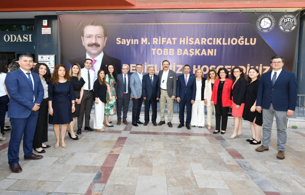 TOBB Başkanı Hisarcıklıoğlu’na Önceki Dönem TBMM Başkanlarından Cemil Çiçek ile Kredi Garanti Fonu (KGF) Yönetim Kurulu Başkanı Erdoğan Özegen’in yanı sıra TOBB Yönetim Kurulu Üyeleri Aydın Ticaret Odası Başkanı Hakan Ülken ile Uşak Ticaret ve Sanayi Odası Yönetim Kurulu Başkanı Suat Selim Kandemir, TOBB Gümrük ve Turizm İşletmeleri (GTİ) AŞ Yönetim Kurulu Başkanı M. Arif Parmaksız ile GTİ Başkan Vekili Ankara Ticaret Odası Başkanı Gürsel Baran, GTİ Yönetim Kurulu üyeleri Sakarya Ticaret ve Sanayi Odası Yönetim Kurulu Başkanı A. Akgün Altuğ, Manisa Ticaret ve Sanayi Odası Yönetim Kurulu Başkanı Mehmet Yılmaz, Polatlı Ticaret Odası Yönetim Kurulu Başkanı Ulvi Sakarya, Amasya Ticaret Ve Sanayi Odası Yönetim Kurulu Başkanı Murat Kırlangıç, Türkiye Odalar ve Borsalar Birliği Genel İdare Kurulu (GİK) üyelerinden Odalar ve Borsalar Birliği Başkan Danışmanı ve Önceki Dönem Gıda, Tarım ve Hayvancılık Bakanı Kutbettin Arzu ile Trabzon Ticaret ve Sanayi Odası Meclis Başkanı Mustafa Şadan Eren ve TOBB’un üyeler ve hizmetleriyle ilgili müdürleri eşlik etti. Toplantıya katılanlar arasında Denizli Büyükşehir Belediye Başkan Vekili Av. Ali Değirmenci, Pamukkale Üniversitesi Rektörü Prof. Dr. Ahmet Kutluhan, Denizli Cumhuriyet Başsavcısı Burhan Bölükbaşı, Denizli Ticaret Borsası Başkanı İbrahim Tefenlili, Acıpayam Ticaret Odası Başkanı Hasan Kayhan, Babadağ Ticaret Odası Başkanı Fatih Karakurt, Buldan Ticaret Odası Başkanı Halil Baştürkmen, Sarayköy Ticaret Odası Başkanı Orhan Dikici, Tavas Ticaret Odası Başkanı Saffet İnamlık, Denizli Ticaret Odası Yüksek İstişare Kurulu üyeleri, TOBB Denizli İl Kadın Girişimciler Kurulu İcra Komitesi üyeleri ile TOBB Denizli İl Genç Girişimciler Kurulu İcra Komitesi üyeleri de yer aldı.
