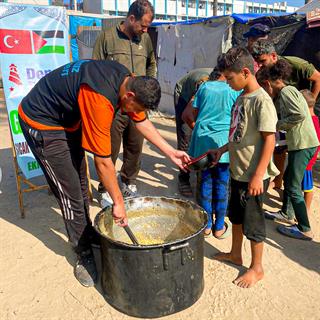 İsrail ambargolarına rağmen yardım ulaştırmayı başaran dernek, yapılan bağışlarla sıcak yemek, gıda kolileri, un yardımı ve hijyen setleri dağıtımı yapıyor.