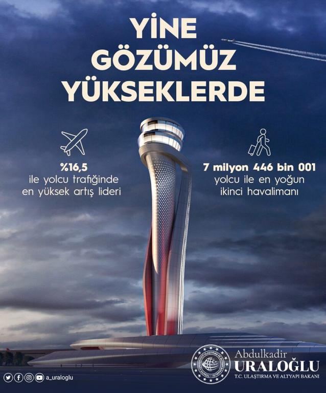 Bakan Uraloğlu’nun verdiği bilgilere göre İstanbul Havalimanı’na ağustos ayında iniş-kalkış yapan uçak trafiği iç hatlarda 12 bin 22, dış hatlarda 35 bin 424 olmak üzere toplamda 47 bin 446’ya ulaştı. Bu havalimanında ağustosta iç hatlarda 1 milyon 900 bin 358, dış hatlarda 5 milyon 719 bin 302 olmak üzere toplamda 7 milyon 619 bin 660 yolcuya hizmet verildi. İstanbul Sabiha Gökçen Havalimanı’nda ağustos ayında iniş-kalkış yapan uçak trafiği iç hatlarda 10 bin 138, dış hatlarda 11 bin 305 olmak üzere toplamda 21 bin 443 olarak gerçekleşti. Yolcu trafiği ise iç hatlarda 1 milyon 829 bin 817, dış hatlarda 1 milyon 890 bin 749 olmak üzere toplamda 3 milyon 720 bin 566 oldu. Genel havacılık faaliyetlerinin devam ettiği İstanbul Atatürk Havalimanı’nda ise ağustosta 2 bin 499 uçak trafiği gerçekleşti.