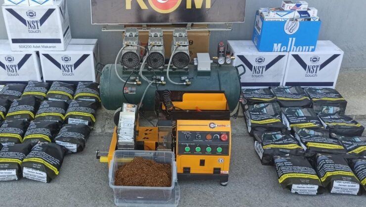 Yapılan operasyon ve aramalarda 48 bin 875 adet kaçak makaron, 5 bin 930 adet kaçak dolma sigara, 500 adet sigara yan ürün, 28 adet bandrol, 20 kilogram kıyılmış tütün, 1 adet elektronik sigara sarma makinası ve bu makinalara takılı vaziyette hava kompresörü ele geçirildi.