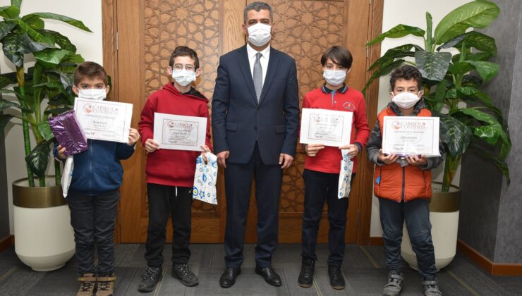 Yarışmada aldıkları derecelerle Denizli’ye eğitim alanında büyük bir gurur yaşatan 5 öğrenciyi makamında kabul eden İl Milli Eğitim Müdürü Süleyman Ekici, “Eğitimin her kademesinde elde ettiğimiz başarılar günden güne artıyor. Hedefleri olan ve bu hedefler doğrultusunda büyük gayretler sonucu elde ettikleri başarılarla bizleri gururlandıran öğrencilerimizi içtenlikle tebrik ediyorum” dedi.