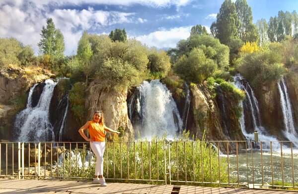 1945 yılında Müze Memurluğu, 1972 yılında da Müze Müdürlüğü olarak hizmet vermeye başlamış. Şehrin en çok tercih edilen turistik mekanlardan biri de MURADİYE ŞELALESİ’dir. Van’ın Muradiye ilçesinde, Bendimahi Çayı Üzerinde bulunuyor. Kaynağını Tendürek Dağı’ndan alıyor. Şelalenin yüksekliği 50 mt. Suyun birçok noktadan düşüşü, insanı büyülüyor. Şelaleyi daha yakından izleyebilmek için tahta köprüler ve merdivenler yapılmış. Bir de işletmeye açık kafesi var. Bu kafede kahvenizi içerken suyun akışını izlemek, suyun sesine kendinizi kaptırmak huzur veriyor. Van gezimizi bitirken en son uğradığımız yer, VAN KEDİSİ EVİ’ydi. Van kedilerini koruma amaçlı yapılıp hizmet veren bir işletme. Kedilerin dışardan izlenebilmesi için her tarafı camlı özel odalar yapılmış. Bu odaların içine girip kedilere dokunarak güzel vakitler geçirebiliyorsunuz. Kedi Evi’nin hemen yanında Urartu Medeniyeti’nden günümüze kadar gelmiş el sanatı olan “Savat” işçiliğinin yapıldığı gümüş atölyesi bulunuyor. Buraya da uğrayarak Savat’ın nasıl işlendiğini ustalardan izleyerek bilgi aldık. Dileyen bu el sanatıyla yapılmış takılardan, ev eşyalarından alarak alışverişini yaptı. Böylelikle Van gezimizi bitirmiş olduk. Sonraki rotamız olan Ağrı yazımda görüşmek üzere diyelim..Sevgiyle kalın..