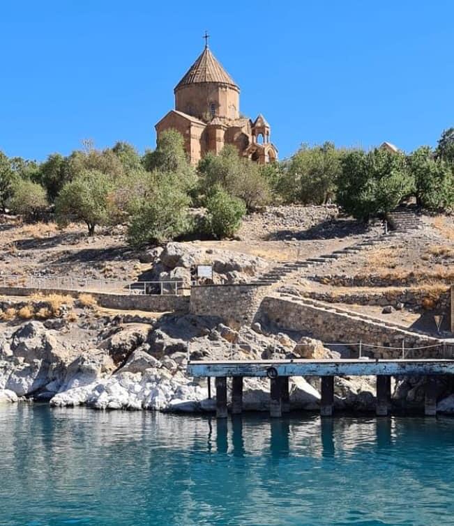 Doğu Anadolu turumuzda, bir günümüzü dolu dolu geçirdiğimiz bir şehrimiz de Van’dı. Van denilince ilk akla gelen yer tabi ki, AKDAMAR ADASI ve KİLİSESİ’dir. Akdamar Adası, Van Gölü üzerinde bulunur. Kilise de adanın üzerine inşa edilmiş. Kilise, Hristiyanlar özellikle Ermeniler için büyük önem arz ediyor. Kudüs’ten İran’a kaçırılan Haç’ın bir parçası bu kilisede saklanmış. Haç için Kral Gagik 915-921 yıllarında mimar Manuel’e bu kiliseyi yaptırtmış. Bu yüzden Kutsal Haç Kilisesi de denilmektedir. Adanın isminin nereden geldiğine dair bir de efsanesi vardır. Efsane şöyledir; Ermeni baş keşişin “Tamar” adında güzel bir kızı vardır. Genç bir çoban Tamar’aya aşık olur. Gizli gizli geceleri adada buluşurlar. Tamara, ona fener tutarak yol gösterir, yanına yüzerek gelmesini sağlarmış. Bir süre sonra kızın babası duyar ve bunları ayırmak ister. Bir gece kızından habersiz feneri alıp adanın kıyısına gelir ve feneri sürekli kıyıdan uzak tutarak genç delikanlının yorulup boğulmasına sebep olur. Delikanlı, son nefesini verirken dudaklarından “Ah Tamar” sözcükleri çıkar. Genç kız da üzüntüsünden kendisini göle bırakır. Günümüze kadar isminin, ”Ah Tamar-Ahtamara-Akdamar” şeklinde değişerek geldiği söylenir. Belki basından duymuşsunuzdur, on yıldır Ermeni din adamları buraya gelerek ayinler düzenliyor. Adaya gitmek için Van’ın ilçesi Gevaş Limanı’ndan kalkan teknelerle ulaşım sağlanıyor. Biz limanda tekne beklerken, üç otobüs İranlı turist geldi. Oradaki çalışanlarla sohbetimizde en fazla turistin İran’dan geldiğini söylediler. Akdamar Adası’nı gördükten sonra limandaki bir restoranda öğle yemeğimizi aldık. Gölde yetişen meşhur İnci Kefali balığının tadına baktık. İnci Kefali için Uçan Balık da diyorlar. İlginç bir yaşam döngüleri var. Üremelerini gölün tuzlu, sodalı suyunda yapamadıklarından, yumurtalarını derelere bırakır sonra tekrar göle dönerlermiş.