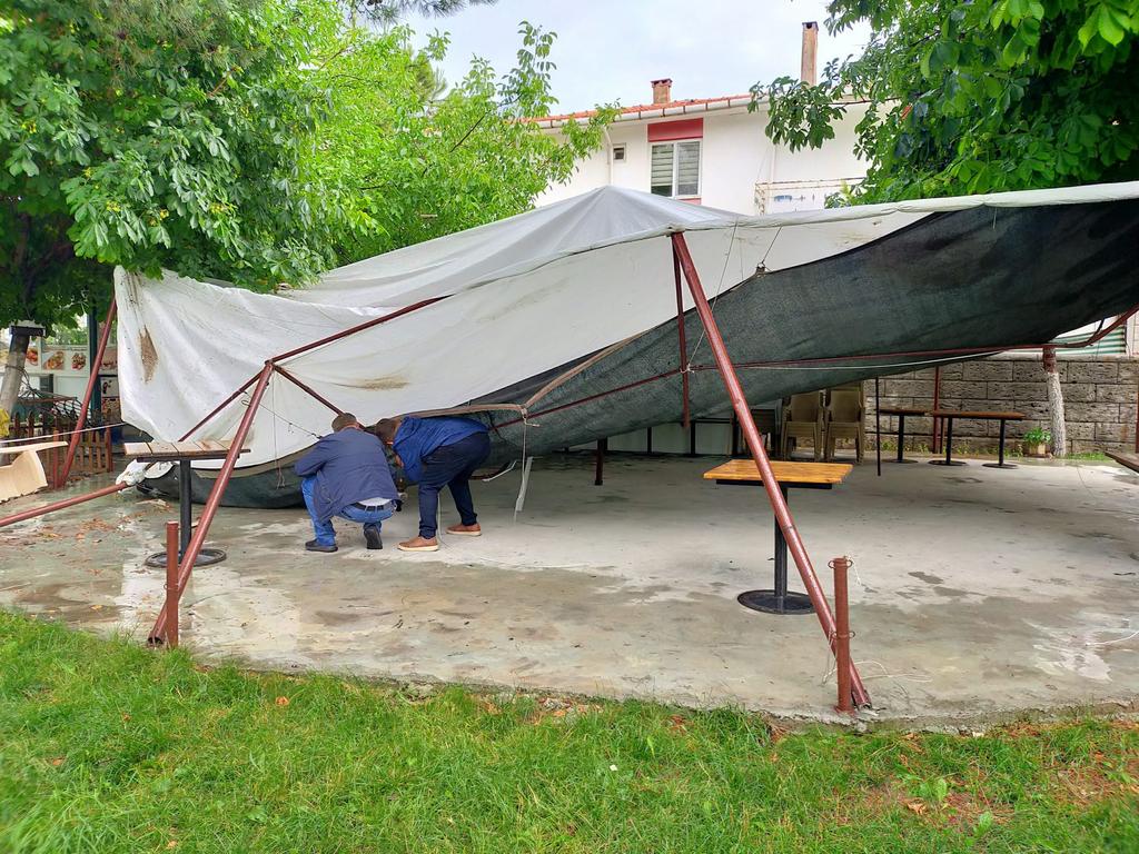 Denizli’nin Tavas ilçesinde aniden bastıran yağmur, yerini doluya yağışına bırakarak hayatı olumsuz etkiledi. Şiddetli bir şekilde bastıran yağışlar sonrası cadde ve sokaklar adeta göle döndü. Yağışa hazırlıksız yakalanan vatandaşlar çatı altı ve dükkanlara sığınırken, yürümekte dahi zorluk çekti. Bir süre etkisini gösteren yağmur ve dolu yağışı sonrası bazı dükkan ve evleri su bastı. Yağışın etkisini yitirmesi ardından ellerine kovaları alan esnaf ve vatandaşlar suyu tahliye ederek etrafı temizledi. Yağış sonrası bazı çatılarda ise hasar oluştuğu öğrenildi.