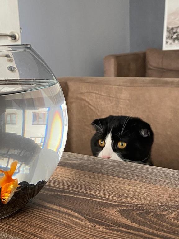 Kedilerin sahibi ve aynı zamanda reklam ajansı yöneticisi Murat Çeşme; “Balıklarımızı yeni almıştık bir hafta anca olmuştur. Kedilerimiz arada gelip oynuyorlardı ve suyundan içiyorlardı. Tabi ben dikkatli oluyordum odada olmadığım zamanlar kapıyı kapatıyordum. Ama son olayda bir arkadaşımız kapıyı açık bırakmış, kedilerimizde gelmiş balıklarla oynamaya başlamış. Aslında akvaryumda tam masanın ortasındaydı. Yani çokta düşürebilecekleri bir konumda değildi ama bayağı uğraşarak, düşürmeye çalışmışlar gibi olmuş. Zaten kamera kayıtlarında da mevcut. Kedimizin birinin adı Ceo, ofisimizin yöneticisi olarak düşündüğümüzden o adı koyduk. Oğlu olunca onun adına da Leo koyduk, biri 1,5 yıldır bizimle diğeri ise 6 aydır bizlerle birlikte yaşıyor. Ofisimizin bir ferdi oldular, çok seviyoruz. Ama tabi böyle ufak yaramazlıkları olabiliyor. Ses duyunca geldik, balıkları hemen apar topar leğene aldık. Balıklar yaşıyor artık, onları da kurtardık. Kamera kayıtlarını izlediğimizde ise çok şaşırdık” dedi.