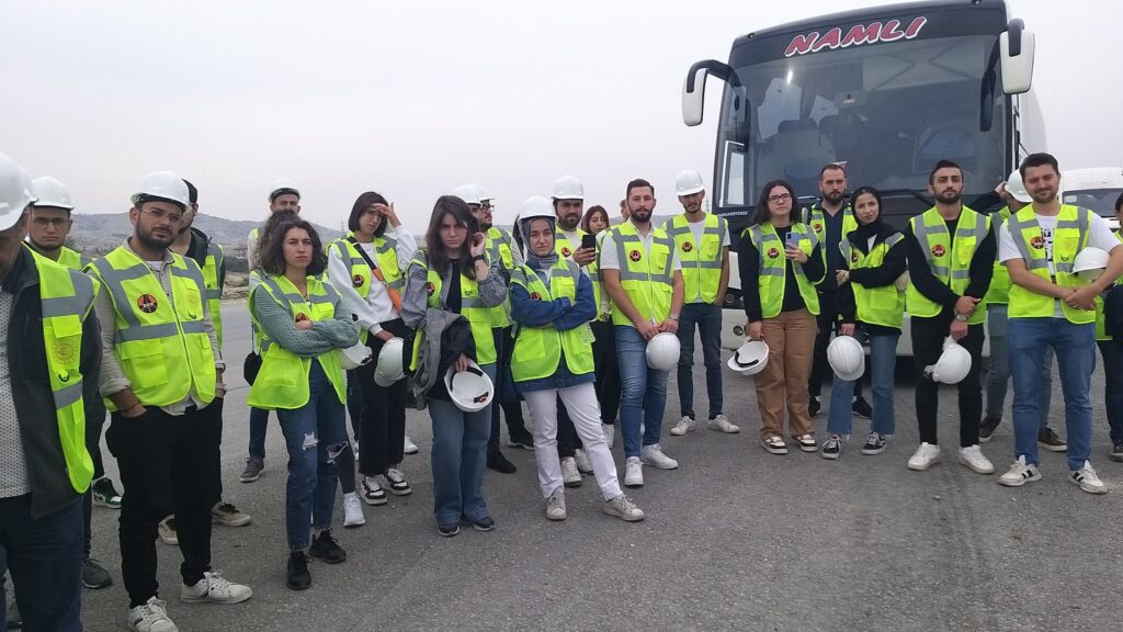 Aydın-Denizli Otoyolu’na düzenlenen teknik gezide katılımcılara öncelikle şantiye iş güvenliği eğitimi verildi. Otoyol ile ilgili teknik sunumun ardından saha incelesine geçildi. Karayolları İzmir Bölge Müdürlüğü ve Müteahhit firma Fernas şirketinin mühendisleri katılımcılara çalışma alanında teknik bilgiler paylaşarak, öğrencilerin sorularını cevapladılar.