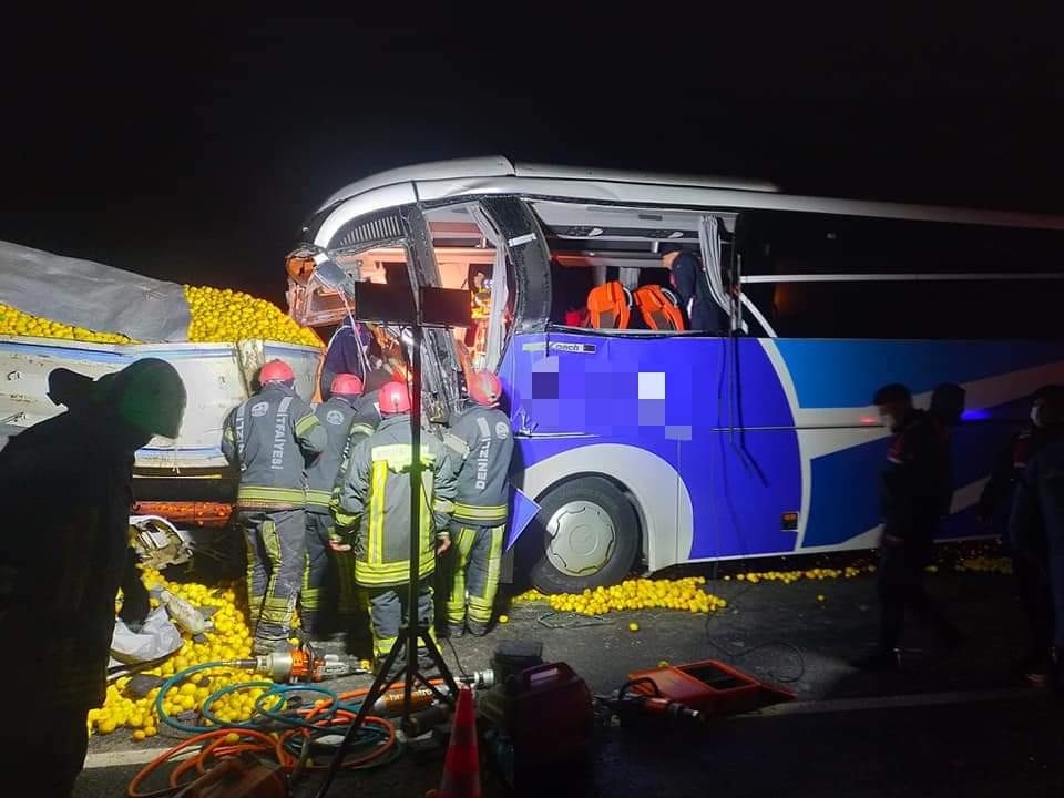 Kaza, Bozkurt ilçesi Başçeşme Mevkiinde meydana geldi. Edinilen bilgilere göre; Denizli – Afyonkarahisar karayolu üzerinde seyir halinde olan ve Ankara’dan Muğla’nın Datça ilçesine gittiği belirtilen Mukadder Balkın idaresindeki 48 DG 288 plakalı otobüs, aynı istikamette seyir halinde olan Süleyman T. hakimiyetindeki 66 LV 66 plakalı limon yüklü tıra süratle arkadan çaptı. Çarpmanın etkisiyle otobüsün ön tarafı hurdaya döndü. Tırdaki limonların karayoluna saçıldığı kazada, otobüsteki yolcular ise yerinden fırladı. İhbar üzerine bölgeye çok sayıda polis, itfaiye ve sağlık ekipleri sevk edildi. Olay yerine gelen itfaiye ekipleri sıkışan yolcuları kurtarırken, sağlık ekipleri ise yoğun çaba sarf ederek müdahalelerde bulundu.