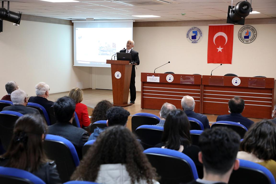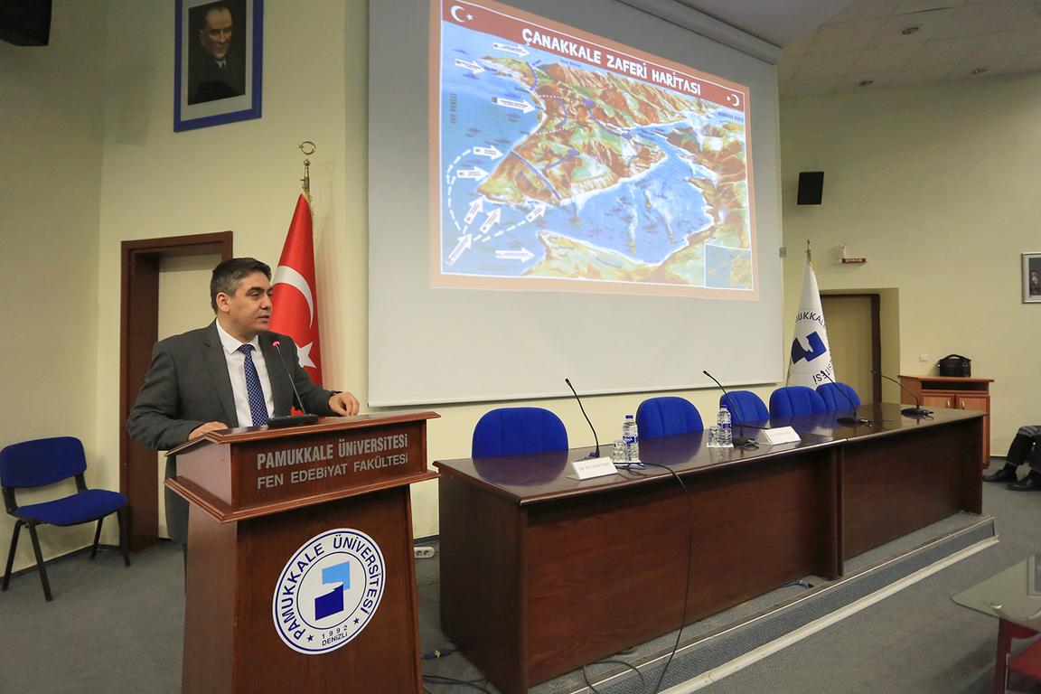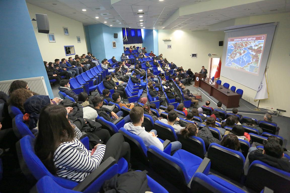 Konferansın sonunda Rektör Yardımcısı Prof. Dr. İbrahim Kısaç, Doç. Dr. Durmuş Akalın ve Öğr. Gör. Okan Toker’e günün anısına şilt takdim etti. 18 Mart Şehitleri Anma Günü ve Çanakkale Deniz Zaferi’nin 107’nci yılı münasebetiyle düzenlenen bir diğer etkinlik ise Eğitim Fakültesi Dr. Öğr. Üyesi Ali Donbay’ın konuşmacı olduğu “Türk Edebiyatında Çanakkale Zaferi” isimli konferans oldu. Eğitim Fakültesi Dekanı Prof. Dr. Bilge Can, öğretim üyeleri ve öğrencilerin katıldığı konferans, Engin Aksel konferans Salonu’nda gerçekleştirildi. Konferansta Dr. Öğr. Üyesi Donbay, Çanakkale Zaferi’nin Türk edebiyatına yansımalarını, dönemin şair ve yazarlarının eserlerinden, farklı yönleriyle ele aldı.